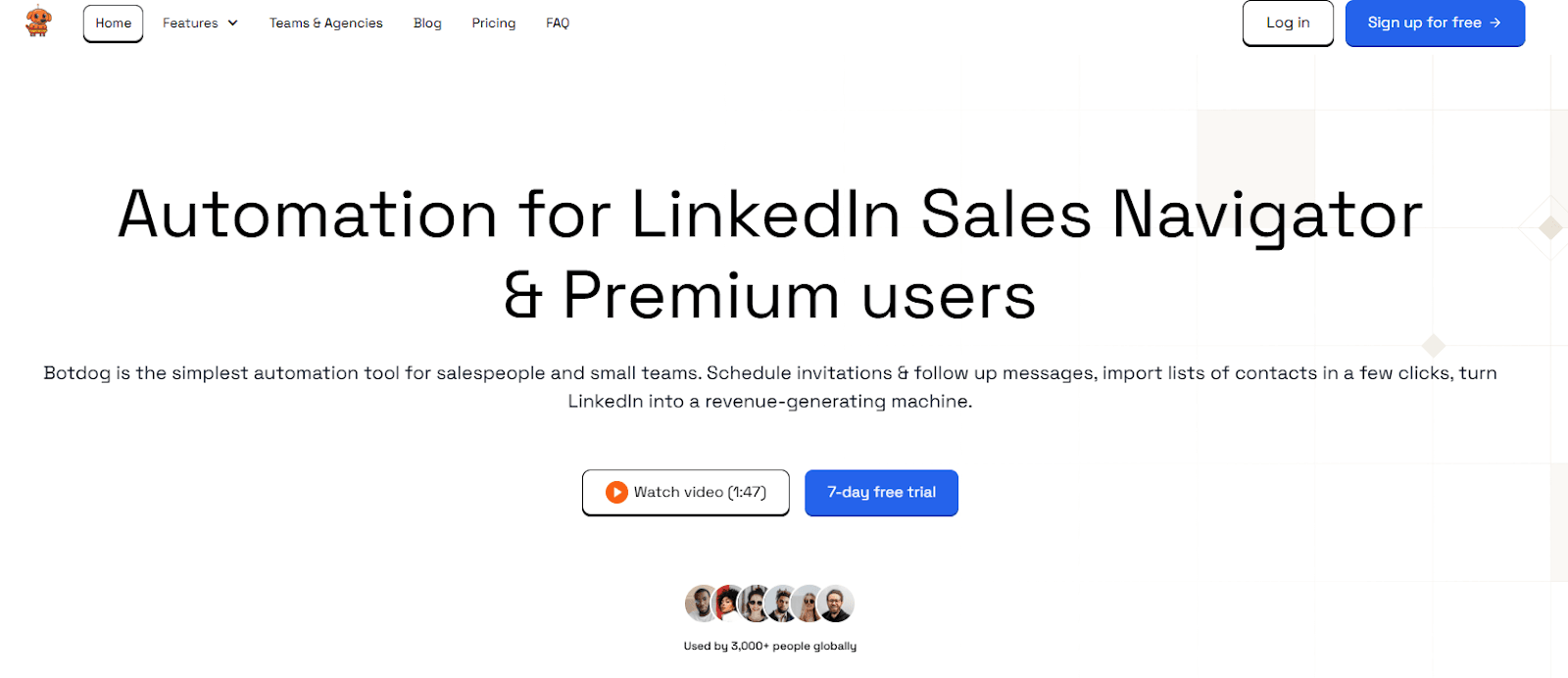 | Botdog | $69/month | Secure automation with built-in safety measures to protect LinkedIn accounts from suspension | Automated sequences, team management, shared inbox, search exports, advanced reports | 4.9/5 |