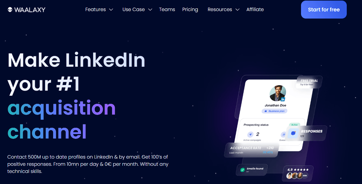 Waalaxy is a user-friendly LinkedIn automation tool that blends LinkedIn outreach with email marketing.