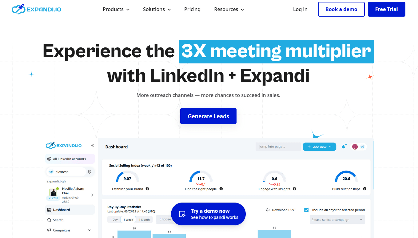 It also integrates email campaigns to maximize outreach and lead generation efficiency. It works well for sales reps, recruiters, and marketers.