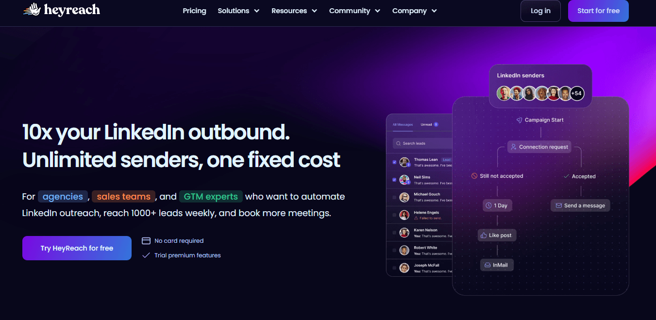 HeyReach helps you manage multiple LinkedIn accounts from a single dashboard. You can send messages, track replies, and handle outreach safely without switching between profiles.