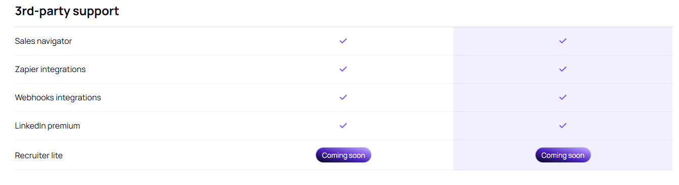 Aimfox has basic integration options, with the notable limitation of no LinkedIn Recruiter Lite support.