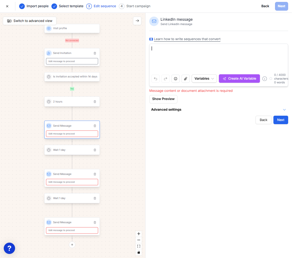 - Once they accept, automate this 14-day message sequence or jump in manually to keep things human.