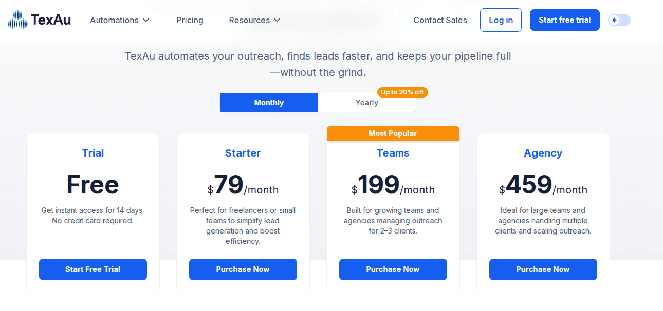 | TexAu | $79 | Automation & lead generation | Automation hours, email credits, CRM and OpenAI integrations, webhook support | 4.3/5 |