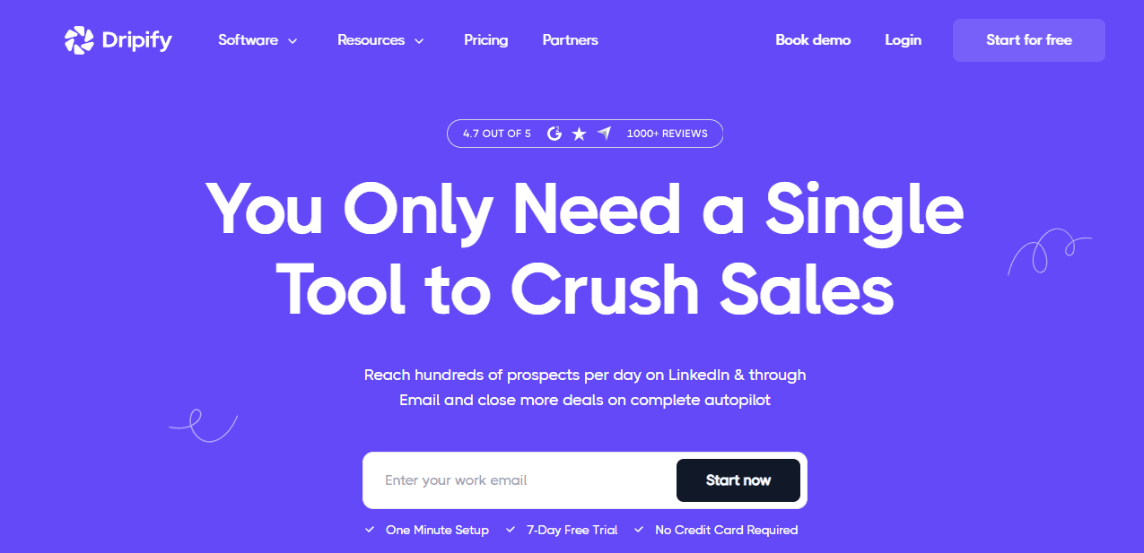 | Dripify | $59/month | 4.6/5 | Multi-channel outreach across LinkedIn + email | Smart sequences, lead scoring, analytics, team management |